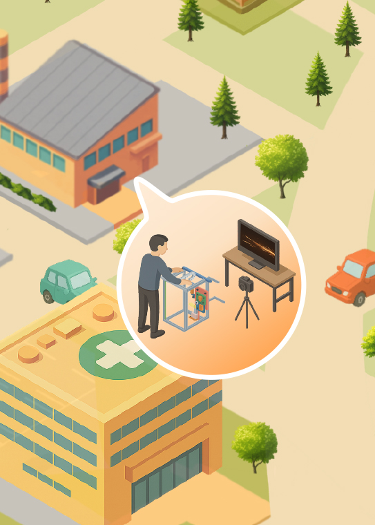 本研究室の火花試験自動化システムは、鋼材を装置にセットすれば、「鋼材にグラインダを当てる」「発生した火花を撮影する」、「火花画像を処理し、識別する」ことを自動化します。当研究室では装置から画像処理ソフトウェアまで全て自分たちで開発し、様々な鋼材の識別を目指しています。