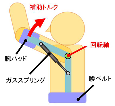そこで、当研究室では作業者の動作を補助する装着型のアシスト装置の開発を進めています。